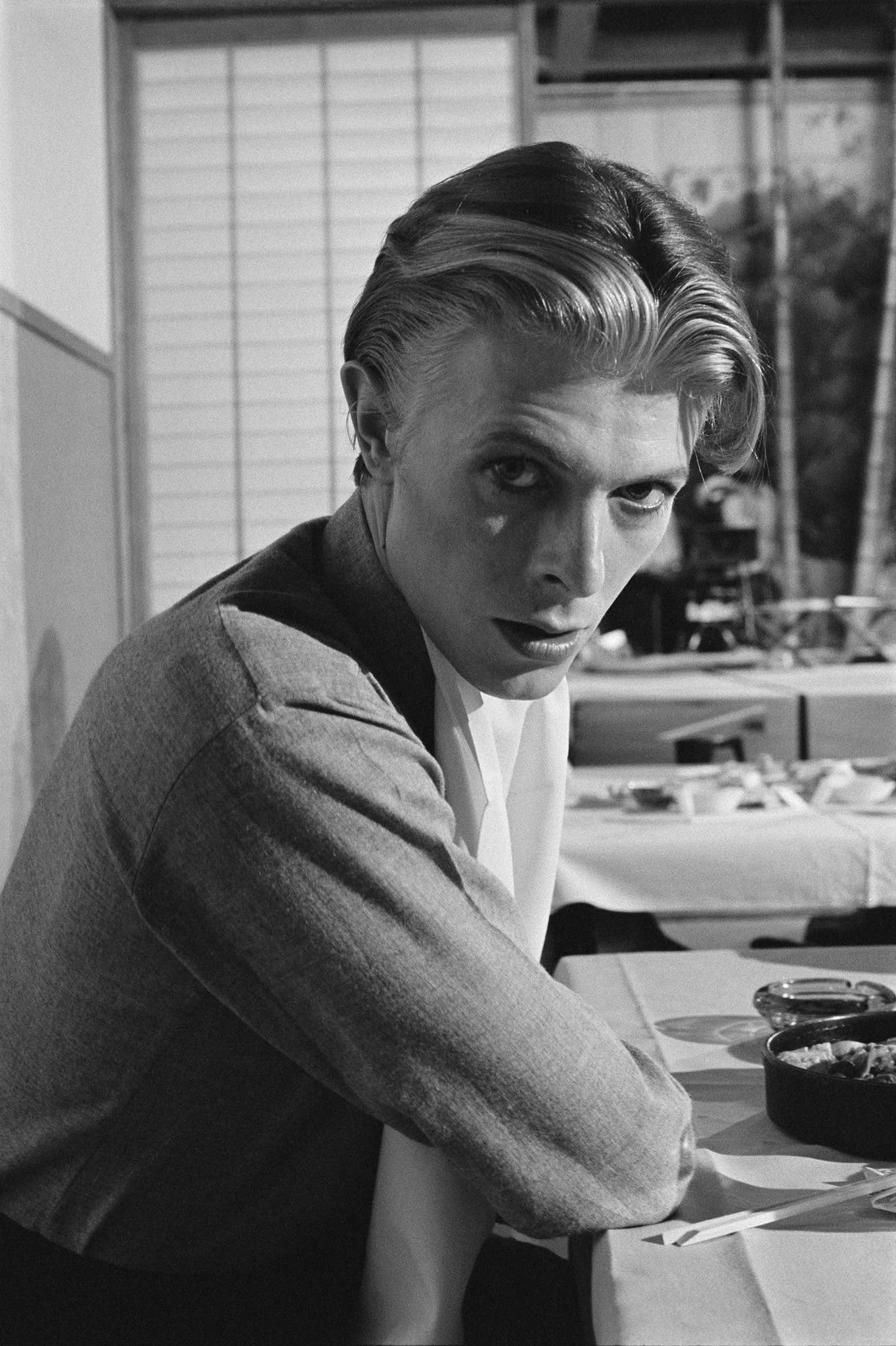 David was filming in a Japanese restaurant somewhere in L.A. He's playing up to my camera to keep himself amused in-between takes. It's as if he is saying: "And you are?"