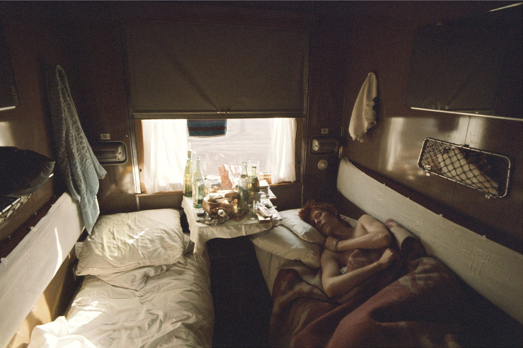 David sleeping off a long night of boozing somewhere in Siberia in 1973. We drank cheap Riesling and beer (Peeva) with a bunch of soldiers we'd met the night before. They were friendly and inquisitive as to what life was like in the West. We asked them what they did in the army: they said they were in the construction unit. You can just make out the bleak Siberian landscape through the window.