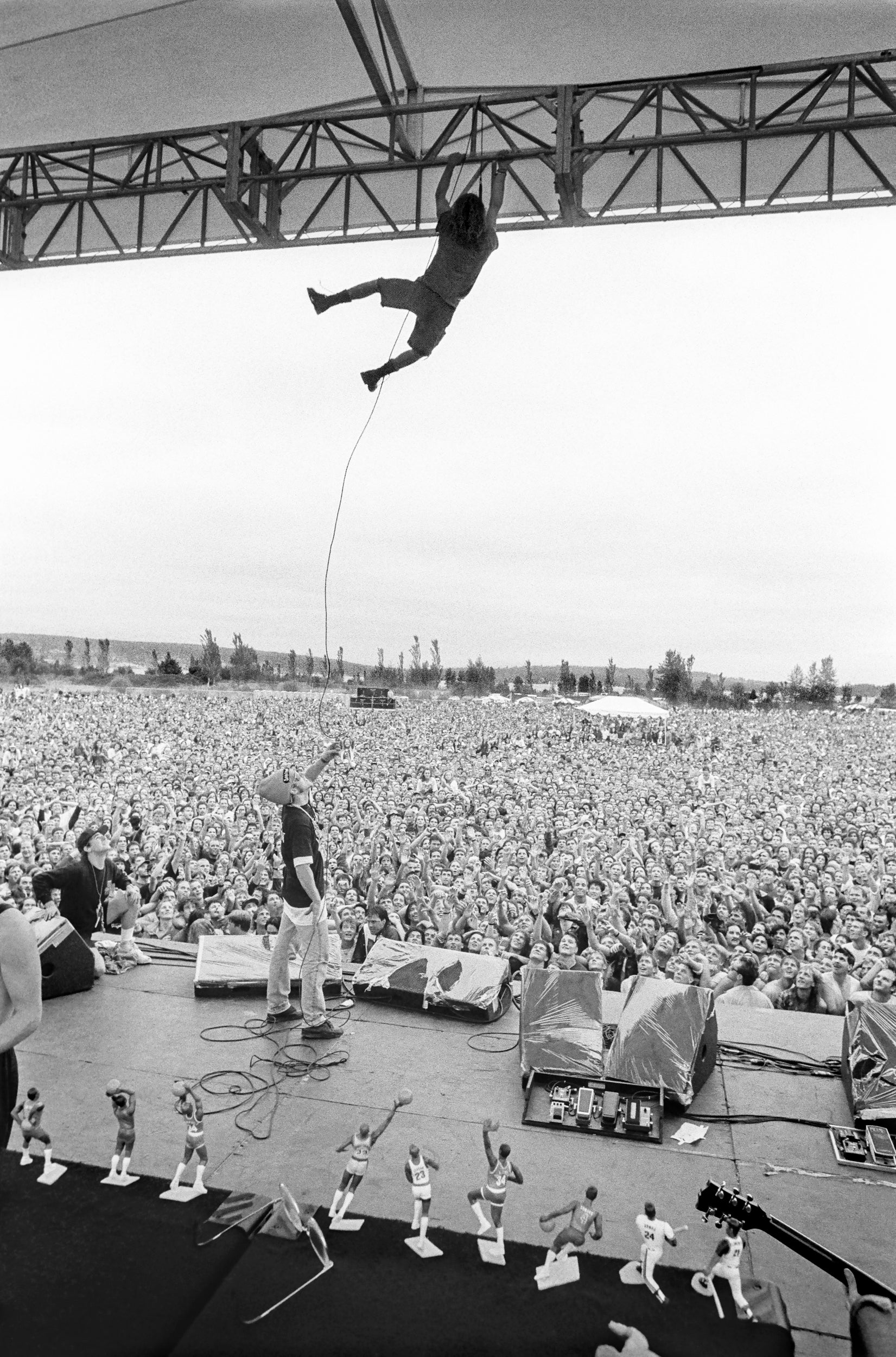 Eddie Vedder hanging from the stage at the Drop in the Park show in Seattle, Washington, 1992.