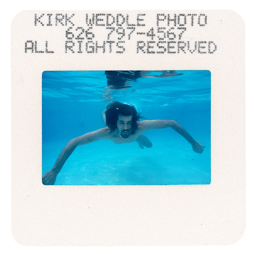 Signed print taken from an original colour slide of Krist Novoselic, Nirvana by Kirk Weddle. This slide was taken during the famous swimming pool sessions with Nirvana for the release of Nevermind in 1991, and photographed by Kirk to produce this series of prints.
